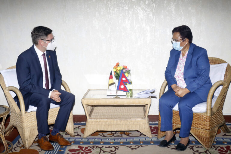 काठमाडौँ– ऊर्जा, जलस्रोत तथा सिँचाइमन्त्री पम्फा भुसालसँग नेपालका लागि जर्मनीका कार्यवाहक राजदूत स्टेफन रुसेकले आज