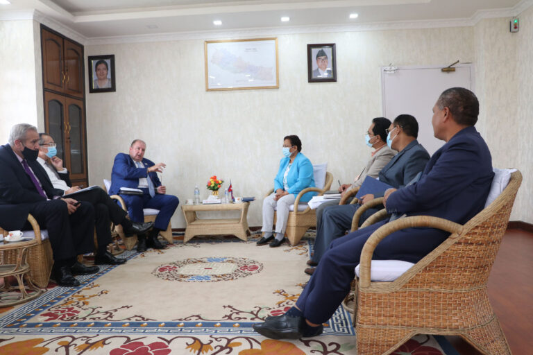 काठमाडौँ– ऊर्जा, जलस्रोत तथा सिँचाइमन्त्री पम्फा भुसालसँग विश्व बैंकको दक्षिण एशिया हेर्ने उपाध्यक्ष हार्टविग सेफरसहितको