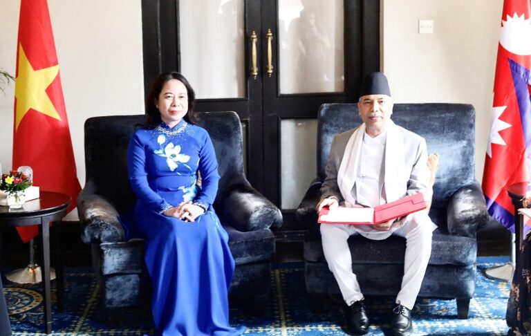 काठमाडौं – उपराष्ट्रपति रामसहायप्रसाद यादव र समाजवादी गणतन्त्र भियतनामकी उपराष्ट्रपति भो थि आन सुआनबीच शिष्टाचार