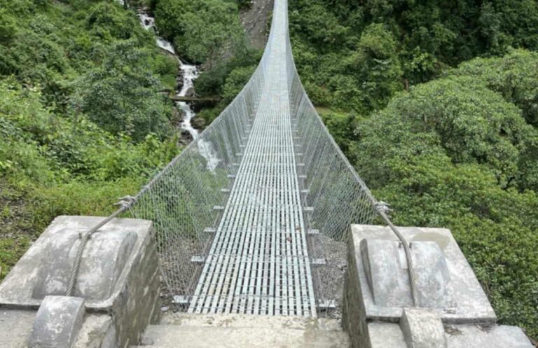 म्याग्दी– म्याग्दीको मङ्गला गाउँपालिका–४ को न्यूखोलामा झोलुङ्गे पुल निर्माण भएपछि एक घण्टाको यात्रा ३० मिनेटमा