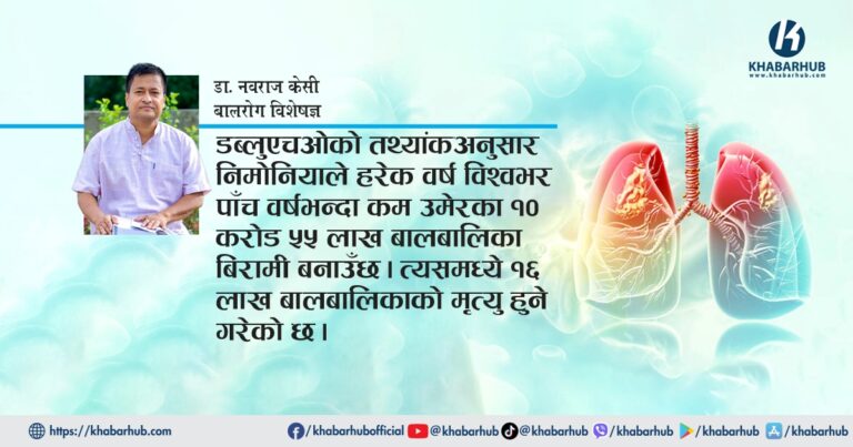 काठमाडौं – आज विश्व निमोनिया दिवस नेपाललगायत विश्वभर विभिन्न चेतनामूलक कार्यक्रम गरी मनाइँदैछ । ५