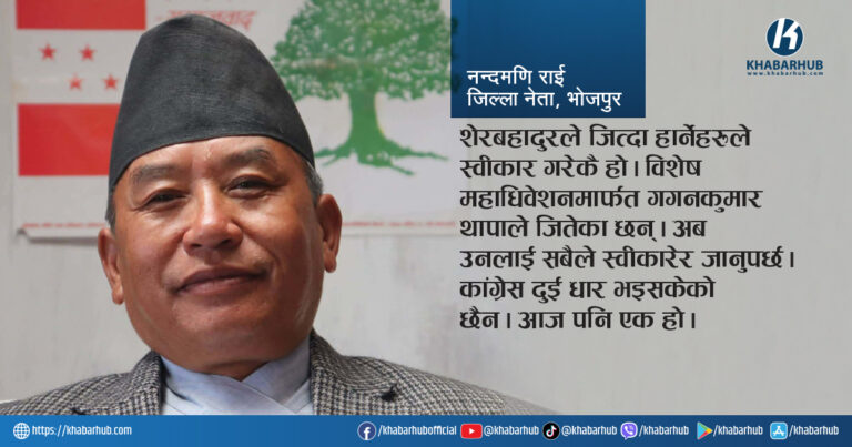 काठमाडौ । कांग्रेसका निवर्तमान भोजपुर जिल्ला सभापति नन्दमणि राईले नेपाली कांग्रेसको द्वन्द्व मत्थर नभई चुनाव