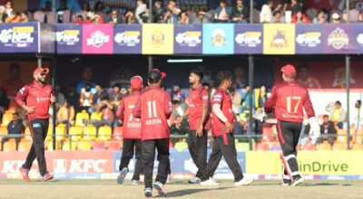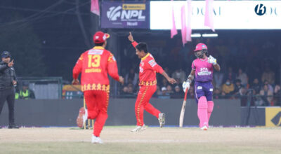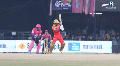 काठमाडौं- नेपाल प्रिमियर लिग एनपीएलअन्तर्गत शनिबारको दोस्रो खेलमा पोखरा एभन्जर्सले चितवन राइनोजलाई ८ विकेटले पराजित गरेको छ । चितवनले दिएको १२१ रनको लक्ष्य पोखराले १९ ओभर ४ बलमा २ विकेट गुमाउँदै पूरा ग¥यो । पोखराका लागि आडन रोसिङटनले सर्वाधिक ६५ रन बनाए । ४८ बलको सामना गरेका उनले चार चौका र पाँच छक्का प्रहार गरे…