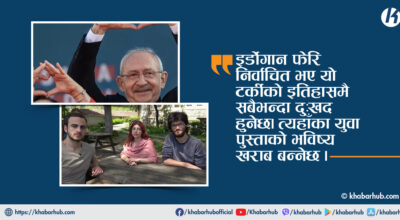 'टाइइप इर्डोगान फेरि निर्वाचित भए यो टर्कीको इतिहासमै सबैभन्दा दुखद हुने छ’, २३ वर्षीया इस्तानबुलकी विद्यार्थी पेरिटले भनिन्। सरकारले नियुक्त गरेको डिनविरुद्धमा सशक्त आवाज उठाएका उनले जेल सजाय पनि भोगेका थिए। पेरिटले यसअघि एक पटकको निर्वाचनमा भोट हालेका छन् भने उनका साथी सुड र इम्रुले पहिलो पटक मतदान गर्दै छन्। यसरी पहिलो पटक मतदान गर्नेको…