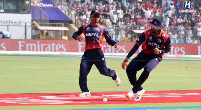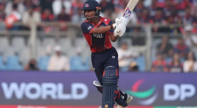 काठमाडौं- आईसीसी टी–२० विश्वकप अन्तर्गत अहिले नेपालले इंग्ल्याण्डको सामना गरिरहेको छ । भारतको मुम्बईस्थित वानखेडे रङ्गशालामा जारी खेलमा इंग्ल्याण्डले नेपाललाई १ सय ८५ रनको लक्ष्य प्रस्तुत गरेको छ । टस जितेर पहिले ब्याटिङ गरेको इंग्ल्याण्डले निर्धारित २० ओभरमा ७ विकेट गुमाउँदै १ सय ८४ रन बनायो । इंग्ल्याण्डका ज्याकब बेथेलले सर्वाधिक ५५ रन बनाए ।…