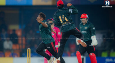 काठमाडौं – नेपाल प्रिमियर लिग (एनपीएल) अन्तर्गत कर्णाली याक्सविरुद्ध विराटनगर किङ्ग्सका बसिर अहमदले अर्धशतक प्रहार गरेका छन् । सिजनको १६ औं खेलमा जावाफी ब्याटिङ क्रममा बसिरले अर्धशतक पूरा गरेका हुन् । उनले ३७ बलमा ३ चौका र २ छक्काको सहयोगमा ५० रन पूरा गरेका हुन् । यो सिजनको १७ औं अर्धशतक हो । यही खेलमा…