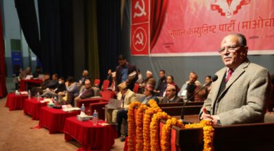 काठमाडौं– नेपाल कम्युनिष्ट पार्टी (माओवादी केन्द्र)को प्रथम विधान अधिवेशन शुरु भएको छ । पार्टी अध्यक्ष एवं प्रधानमन्त्री पुष्पकमल दाहाल ‘प्रचण्ड’ले आज अधिवेशनको उद्घाटन गरे । पार्टी महासचिव देवप्रसाद गुरुङले २० वटा समूहमा विभाजन गरेर प्रस्तावित विधानमाथि छलफल गरिने बताए । सहभागीमध्येबाट एक समूहमा ५० देखि ५५ जना रहनेछन् । बुधबार १ बजेसम्म छलफल गरी आफ्नो…