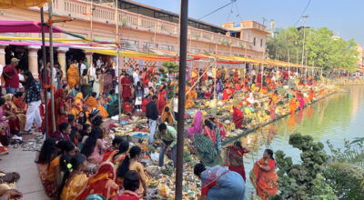 काठमाडौं- जनकपुरमा चैते छठको तेस्रो दिन आज मंगलबार अस्ताउँदो सूर्यलाई अर्घ्य दिइएको छ । प्रत्येक वर्ष चैत र कात्तिकको शुक्ल षष्ठी तिथिका दिन जलाशयको किनारमा सूर्य र षष्ठी देवीलाई अघ्र्य अर्पण गरी छठ पर्व मनाइने गरिन्छ । तस्बिरहरु : नेपाल फोटो लाइब्रेरी