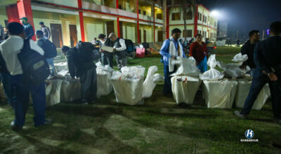 काठमाडौं – निर्वाचन आयोगले विभिन्न आठ जिल्लामा हेलिकप्टरमार्फत मतपेटिका ढुवानी गरिएको जनाएको छ । आयोगका प्रवक्ता नारायणप्रसाद भट्टराईले भने, “रसुवा, दोलखा, रूकुमपूर्व, बाजुरा, बझाङ र हुम्ला र रसुवामा हेलिकप्टरमार्फत मतपेटिका ढुवानी भएको छ, अन्यत्र केही जिल्लामा पनि मतपेटिका ढुवानी जारी छ । शुक्रबार दिउँसो १२ बजेसम्म सबै जिल्लाको मतपेटिका सङ्कलन पूरा हुनेछ ।”
