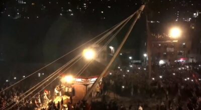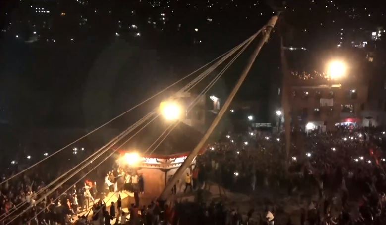 भक्तपुर – भक्तपुरको प्रसिद्घ बिस्केट जात्राको प्रमुख मानिने लिङ्गो आज राति ७ बजेर ४० मिनेटमा उठाइएको छ । स्थानीयवासीले गःहिटीमा रहेको भैरव र भद्रकालीको रथलाई ल्यासिंखेलमा पु¥याएपछि हजारौँको भीडका बीचमा करिब चार घण्टाको अथक प्रयास पछि लिङ्गो ठड्याइएको हो । पचपन्न हात लामो, नाङ्लो जत्रो फेद भएको लिङ्गो तान्त्रिक विधिपूर्वक दशकर्म विधान गरी उठाइएको हो…