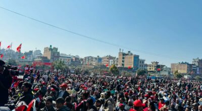 काठमाडौं- नेकपा एमालेको ११ औँ राष्ट्रिय महाधिवेशनको उद्घाटनस्थलमा पार्टी अध्यक्ष केपी शर्मा ओली पुगेका छन् । भक्तपुरको तीनकुनेस्थित नेपाल ट्रष्टको मैदानमा केही बेरअघि अध्यक्ष ओलीको आगमनसँगै महाधिवेशन औपचारिक उद्घाटनतर्फ अग्रसर भएको छ । कार्यक्रमस्थलमा पार्टीका वरिष्ठ उपाध्यक्ष ईश्वर पोखरेलसहित उपाध्यक्ष, महासचिव, उपमहासचिव तथा अन्य पदाधिकारीहरू यसअघि नै पुगिसक्नु भएको थियो । अध्यक्ष ओली कार्यक्रमस्थल प्रवेश…
