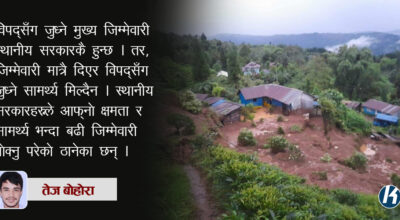 कहालीलाग्दो विनासको छायाँ ओझेल नपर्दै राजनीतिभित्र मानवता खरानी बनाउने तमासा देखिन थालेको छ । जनता दुखेका बेला नेताहरु भित्रभित्रै कुर्सीको परेड खेल्न थालेका छन् । बाल बाल बचेको थिलथिलो मल्हमपट्टी खोजेको शरीर नतङ्ग्रिदै पद, पैसा र पाखुरी प्रदर्शनका जग हँसाउने लीला देखिन थालेका छन् । दुख, पीडा, अभाव, गरिबी भाइरलमा अनुवाद भएका छन् । आँखाको…
