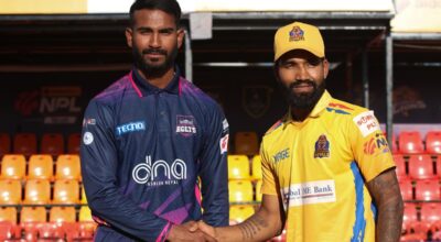 काठमाडौं – नेपाल प्रिमियर लिग (एनपीएल) सिजन २ को बिहीबारको खेलमा लुम्बिनी लायन्सको विकेट तेस्रो विकेटका रुपमा कप्तान रोहित पौडेल आउट भएका छन् । १४ ओभरको पहिला बलमा रोहित हर्मित सिंहको बलमा क्याच आउट भएका हुन् । उनले ३६ बलमा ३५ रन जोडे । लुम्बिनी खेल १४ ओभरमा पुग्दा २ विकेटको क्षतिमा १०३ रनको अवस्थामा…
