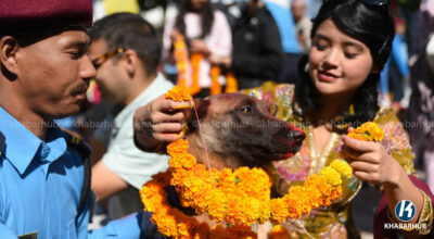 काठमाडौं– नेपाल प्रहरीले सेवा कुकुरसहित कुकुर तिहार पर्व