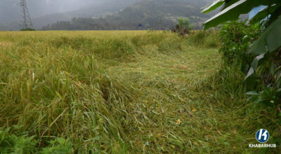 पाक्न लागेको धानबालीमा वर्षाले क्षति, किसान चिन्तित