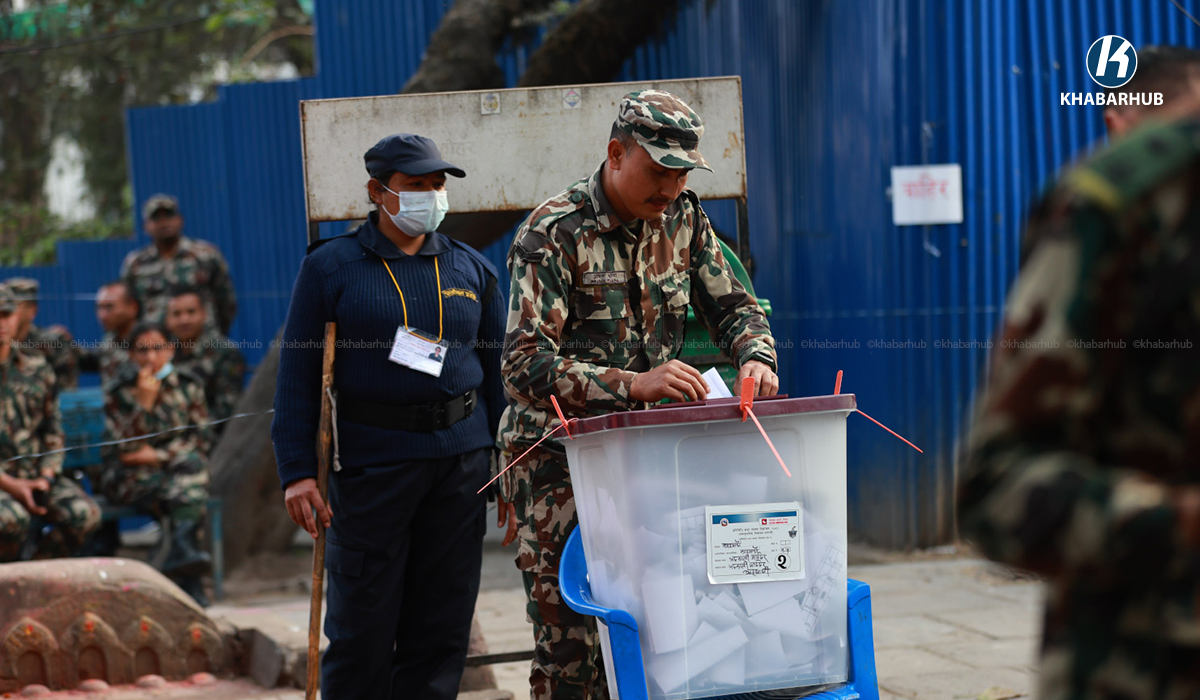 काठमाडौं– कर्मचारी तथा सुरक्षाकर्मीहरूले समानुपातिकतर्फ मतदान गर्न पाउने व्यवस्था हुँदा मतदाता नामावलीमा नाम हुने सैनिकहरूले मतदान गरेका छन् । काठमाडौँको भद्रकालीस्थित