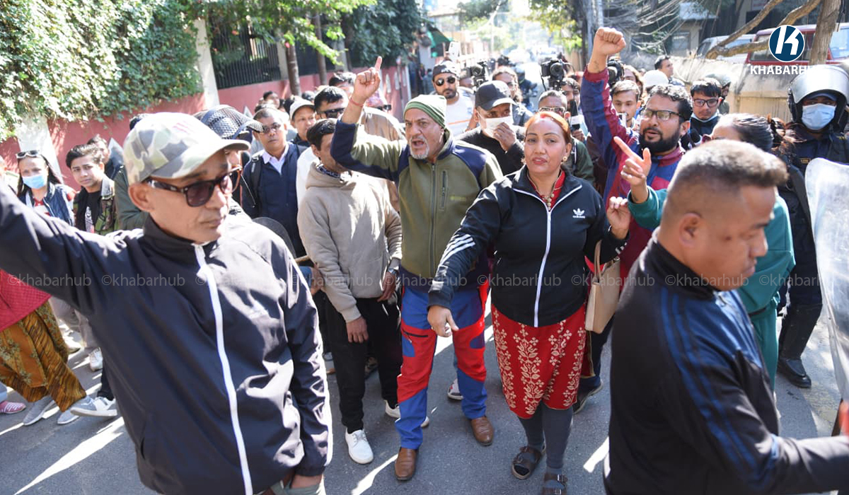 प्रसाईंलाई समातेपछि प्रशासन घेर्न पुगे समर्थक (तस्बिरहरू)