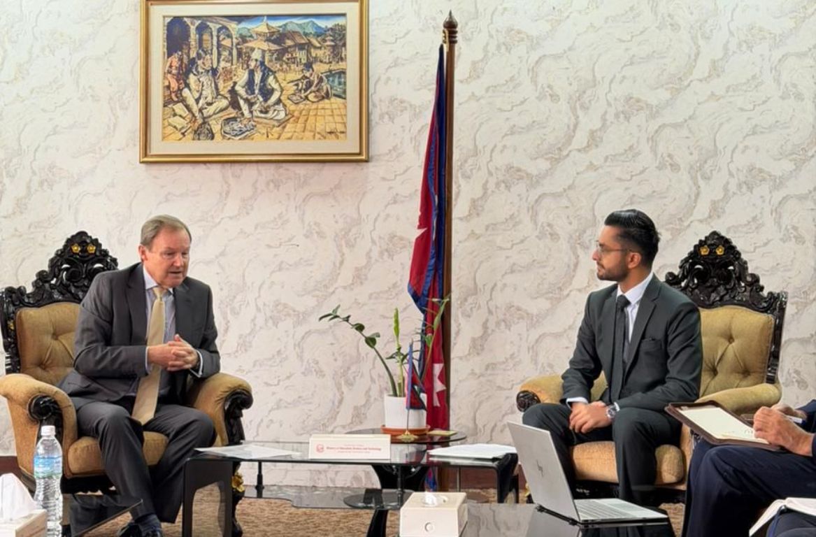 काठमाडौँ : शिक्षा, विज्ञान तथा प्रविधिमन्त्री एवम् सरकारका प्रवक्ता सस्मित पोखलेल सँग नेपालका लागि संयुक्त अधिराज्य (बेलायत) का राजदूत रब फेनले बुधबार शिष्टाचार भेटवार्ता गर्नुभएको छ । सिंहदरबारस्थित मन्त्रालयमा भएको भेटमा नेपालको शिक्षा र खेलकुद क्षेत्रमा सहकार्यबारे कुराकानी भएको थियो । साथै, नेपाल–बेलायतबीचको ऐतिहासिक द्विपक्षीय…