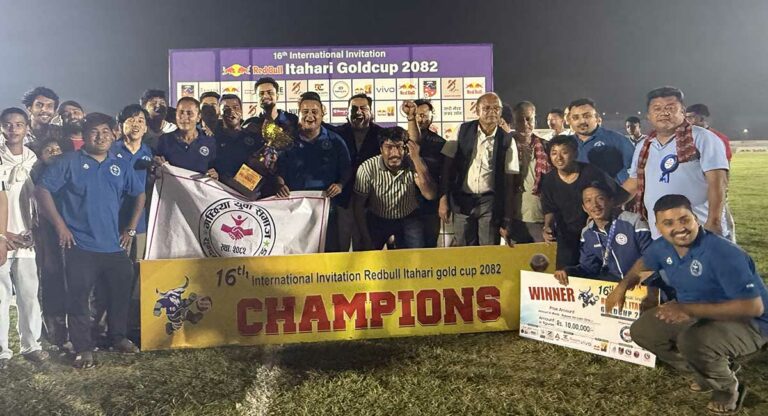 सुनसरी – सोह्रौँ संस्करणको अन्तरराष्ट्रिय आमन्त्रण रेडबुल इटहरी गोल्डकप फुटबल प्रतियोगिताको उपाधि युवा समाज गछिया मोरङले जितेको छ । सोमबार इटहरीस्थित रङ्गशालामा सम्पन्न फाइनल खेलमा प्लानिङ ब्वाइज युनाइटेड काठमाडौँलाई १–० गोलअन्तरले पराजित गर्दै युवा समाज गछियाले उपाधि हात पारेको हो । खेलको ८७औँ मिनेटमा युवा…