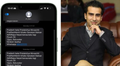 काठमाडौं– राजावादी प्रदर्शनमा सहभागी हुन भन्दै एकै पटक ५० लाख मानिसलाई मोबाइल एसएमएस पठाउने निर्देश सेढाईं पक्राउ परेका छन् ।