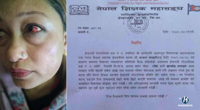 सिन्धुपाल्चोक- जिल्लाको इन्द्रावती गाउँपालिकास्थित भुवनेश्वरी आधारभूत विद्यालयकी प्रधानाध्यापक अञ्जना भण्डारीलाई त्यही विद्यालय व्यवस्थापन समितिका अध्यक्षले आक्रमण गरेका छन् । उक्त